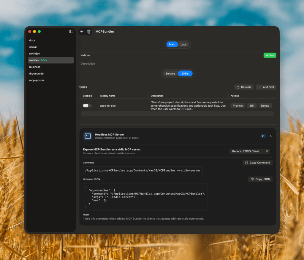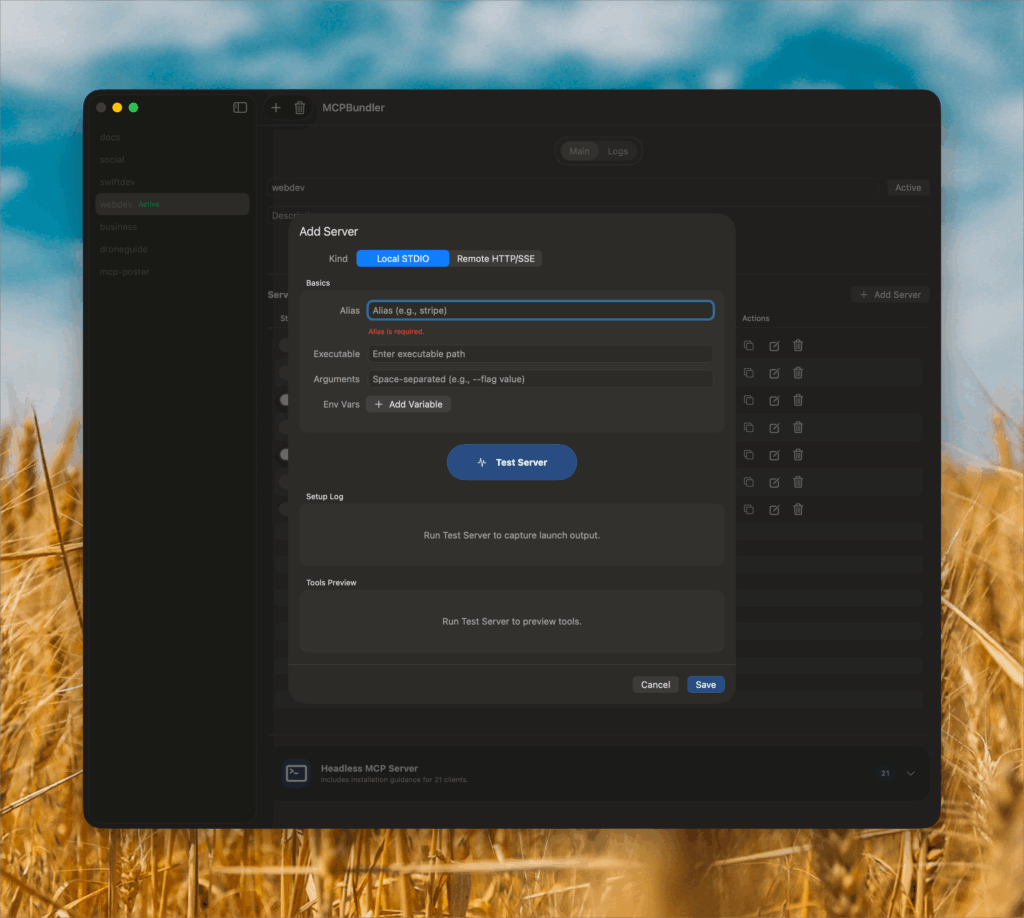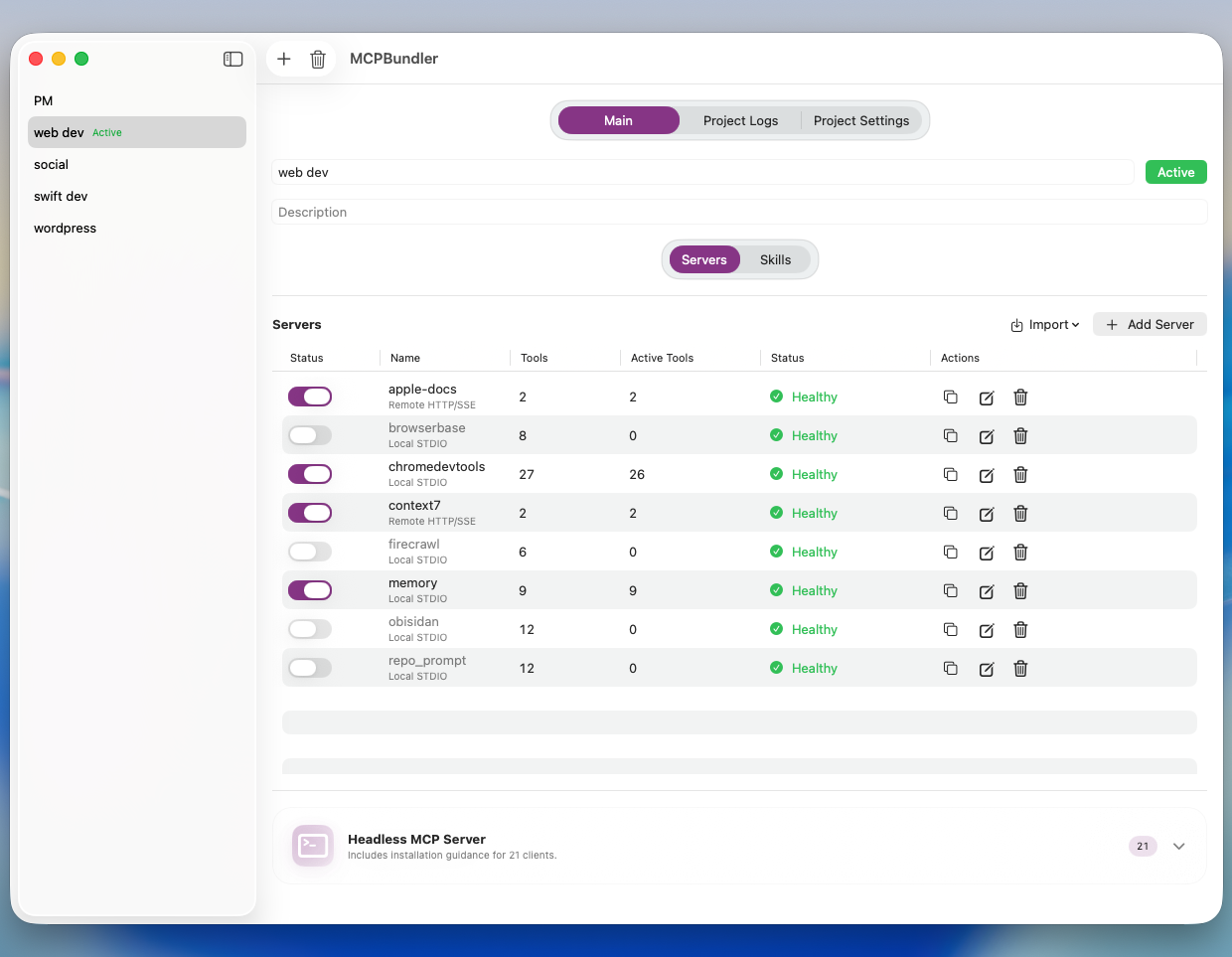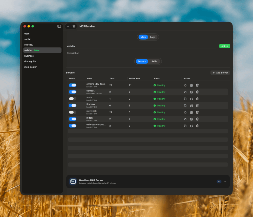 Run every MCP server from one clean MacOS app — save hours per setup.
