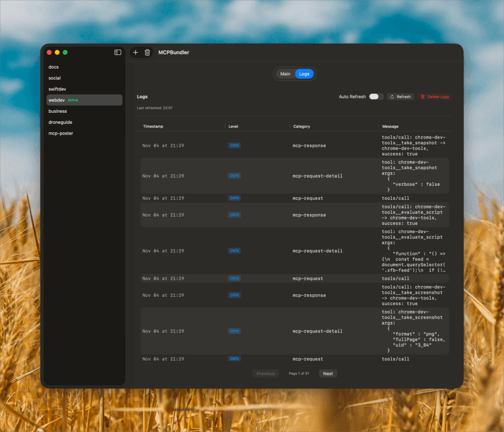 # MCP Bundler 1.0 (Build 17) — 2025-11-19 ## 2025-11-18 - **Deeplinks.** Now it is possible to install MCP servers or even bundles with just one click from the websites. - **Performance & Stability fixes.** Various improvemtns and fixes to make the app more stable and faster. - **Skills improvements.** Skills instructions now prepend a better explanation on what are skills purpose and how to use skills by non-claude tools. - **Temp file fetch tool.** Added the `fetch_temp_file` compatibility tool so oversized responses saved under `/tmp` can be read (now with optional `offset`/`length` chunking), refreshed the pointer copy, and now expose the tool (and guidance) consistently even when large-response storage toggles on mid-session.