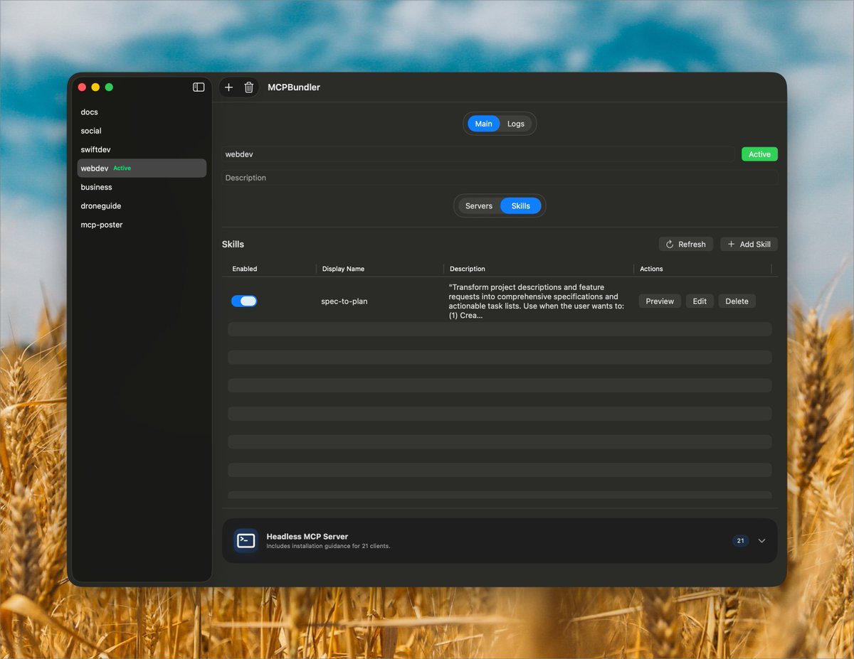 MCP Bundler centralizes all your MCP servers — toggle, group, turn off capabilities instantly. Switch bundles on the fly inside the MCP Bundler.